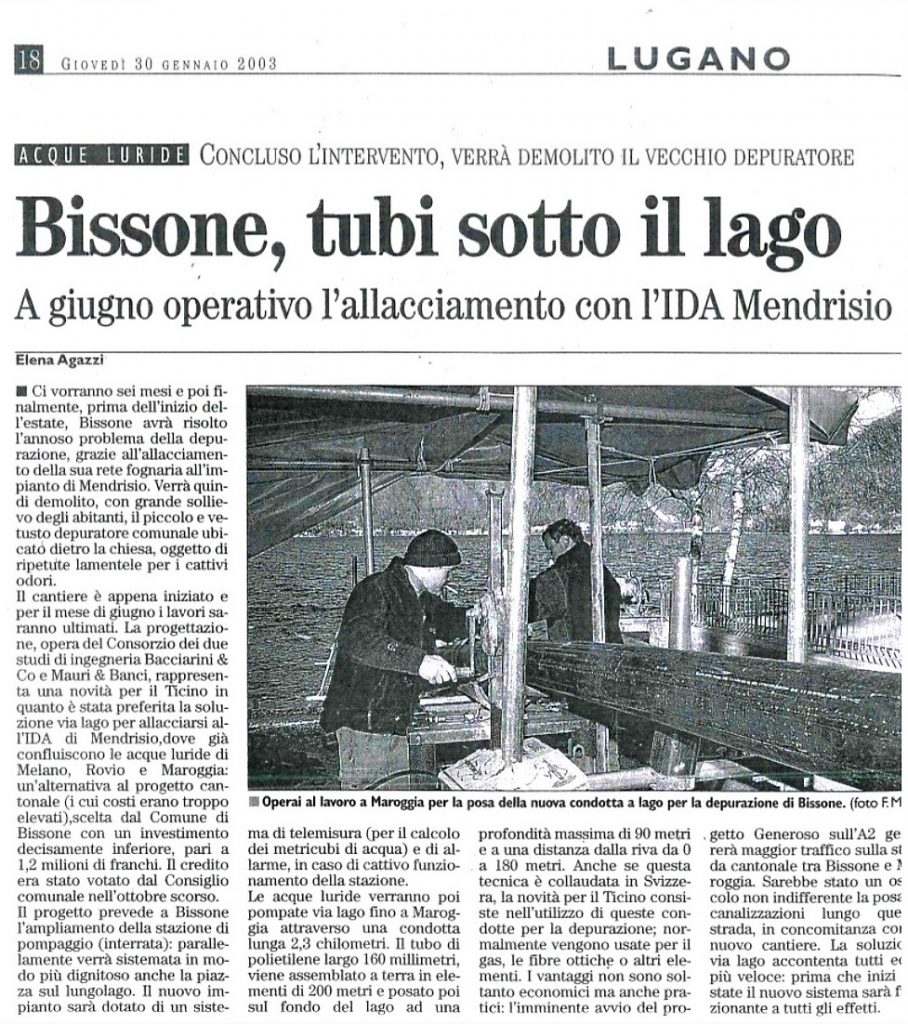 Tubo depurazione sublacuale Bissone - MaroggiaStudi ingegneria Mauri & Banci SA / R. Bacciarini et Co. Sagl